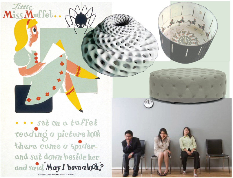 My design is rooted in my interests in play as an adult and where play can come about in unexpected ways. I’m interested in contexts where play is usually not employed to activate a space or facilitate interaction. This piece allows movement and discovery while engaging more than just the person using it. My inspiration is from the first type of animation called phenakistoscope or zoetrope. A simple cylinder that has illustrations on the interior and the only way to see in is through little slits on the side. When its spins the illustration magically becomes an animation. In my scaled up version, the cylinder or drum is not load bearing and is attached to an aluminum Lazy-Susan for a smooth turn. I plan to have a “top” to the zoetrope that acts as an upholstered ottoman. This piece will be made of 1/8 in bent ply for the spinning drum and the rest will be a mixture of sold wood and ply depending on what is being upholstered. I plan to create slots for each illustration so the are removable. I will start with a spider animation to pay homage to little Ms Muffet.